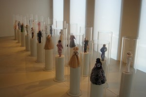 My recent trip to the Netherlands couldn’t have been planned at a more perfect time. Just forty-five minutes away in the city of Antwerp, Belgium at Studio Job Gallery, my favorite fashion duo, Viktor & Rolf were presenting an exhibition titled ‘Dolls / Viktor & Rolf.’ Upon entering the retrospective one was greeted by two long columns of, the Dolls which have become so synonymous with their career, beautifully mounted on tall white pedestals viewed through clear revolving cylinders allowing an intimate three – dimensional look at every detail, of their amazing craftsmanship. The Dolls all present from the ‘Russian Doll’ Autumn/Winter 1999-2000 collection through the ‘Bedtime Story’ Autumn/Winter 2005-06 collection, originally presented while singer and songwriter Tori Amos played the grand piano performing a specially written composition inspired by the biblical love poem Song of Solomon, pulled you in to the extraordinary brilliance of the house of Viktor & Rolf. The exhibition was visually as astounding, like all their runway presentations. Also part of the retrospective is jewellry designed by Nynke Tynagel and Job Smeets of Studio Job for Viktor & Rolf. The exhibition runs through 16 July 2010 at Studio Job Gallery, Begijnenvest 8 2000 Antwerp, Belgium. Hours 14:00 – 18:00 Tuesday – Friday or by appointment.