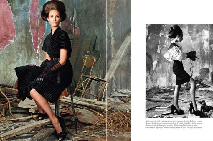 Lady Icon: The beauty and elegance of supermodel, Christy Turlington wearing 60’s inspired fashion is exquisitely captured by photographer, Steven Meisel for the July’ 10 cover feature of Vogue Italia. Fashion editor, Karl Temper. http://www.vogue.it