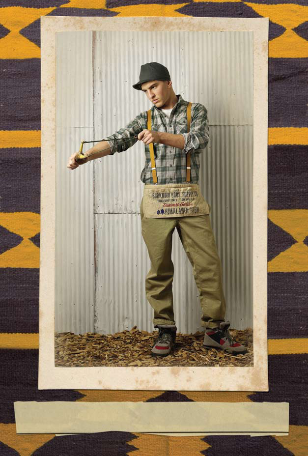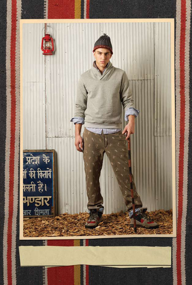For their Fall 2010 collection, Doug and Ben Burkman take us on a journey to Shimla, the Himalayan City which served as the summer capitol of the British Raj, the period of British Colonial rule in South Asia, 1858-1947. The collection “Himalayan High” brilliantly infuses the distinctive influence of the former colonial outpost through Himalayan-inspired graphics, dobby textured weaves, multicolored geometric fairisle and fine gauge merino wool sweaters, along with jersey lined flannel check shirts, light weight chambray, and hooded popovers, all distinctively designed to be layered for a luxuriously cool look.