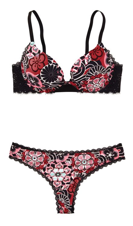 Inspired by the signature Josie Natori East-meets-West aesthetic, the collection is comprised of 37 pieces and includes bras, panties, robes, knit and woven pants, leggings, camis and chemises. The holiday collection features deep red geometric prints with Geisha accents, while the Valentine’s Day collection includes floating butterflies with hot pink florals. Both collections include an assortment of solid-colored bras and panties.
