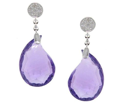From: Shaftel Diamond Company – Amethyst Drop Earrings with Amethyst 23.60cttw and Diamonds 0.04ctttw set in 18k White Gold. Price $500.00 www.shafteldiamonds.com