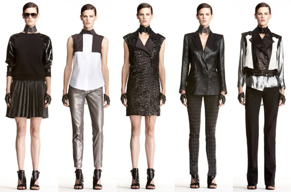 A few of my favorites from the collection, the Ossie two-toned leather biker vest, sequined legging pants, printed cotton-poplin collar, Donna sequined crepe dress, KARL tee and leather gladiator sandals.