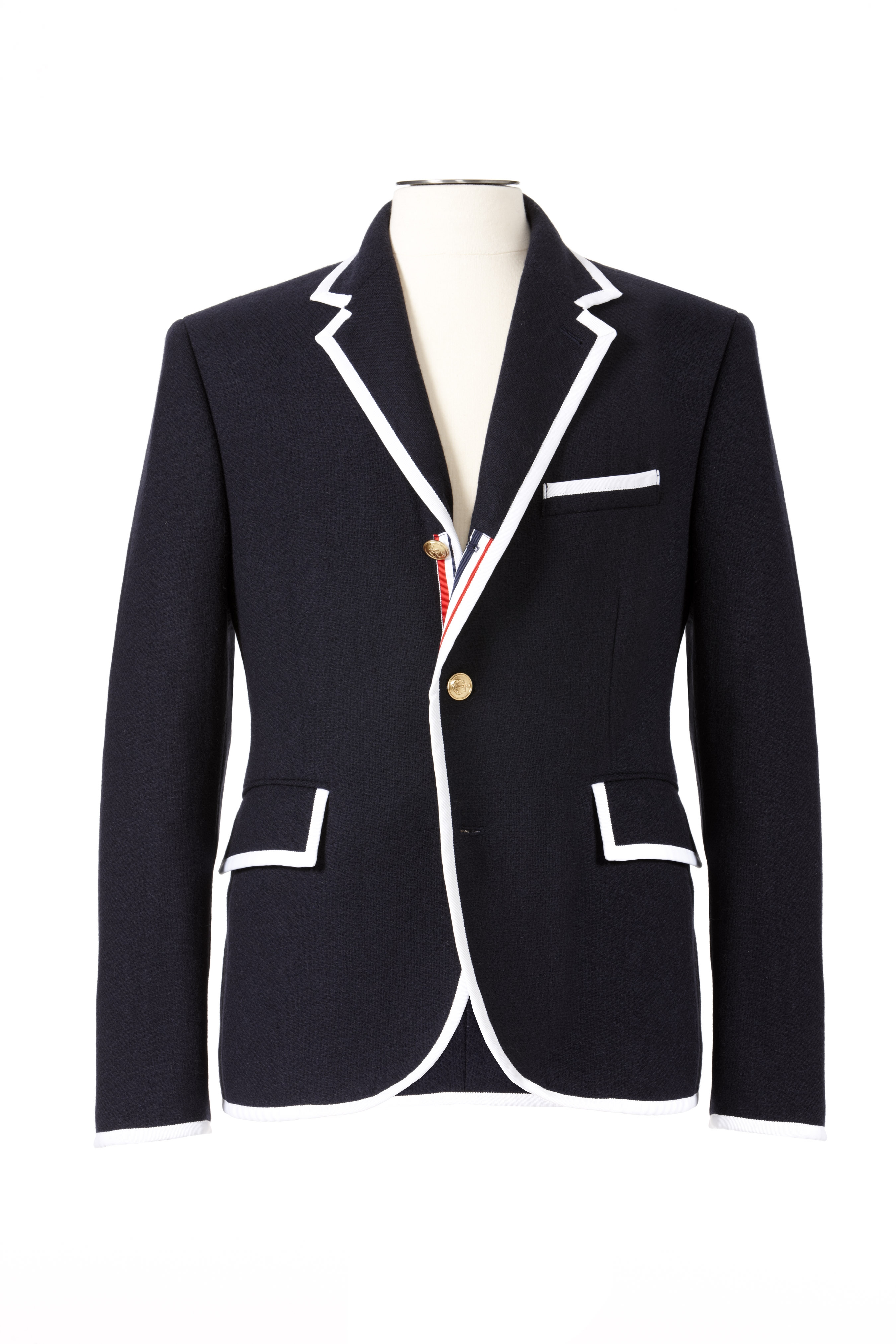 Thom Browne – Men’s Navy Blazer With White Piping $149.99