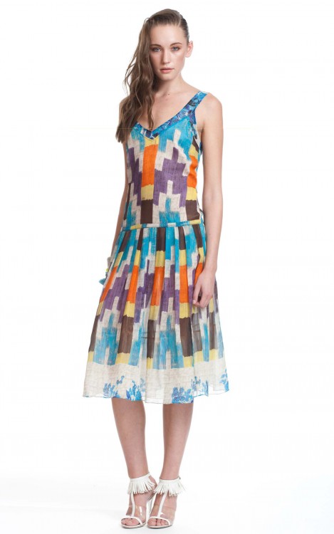 My Look of the Day is the Dropped Waist Frock Dress from Tracy Reese. Get a jump on your spring wardrobe with this feminine and chic A-Line dropped waist v-neck dress, made from 100 % silk geometric floral bouquet ikat print. Price $428.00 www.tracyreese.com