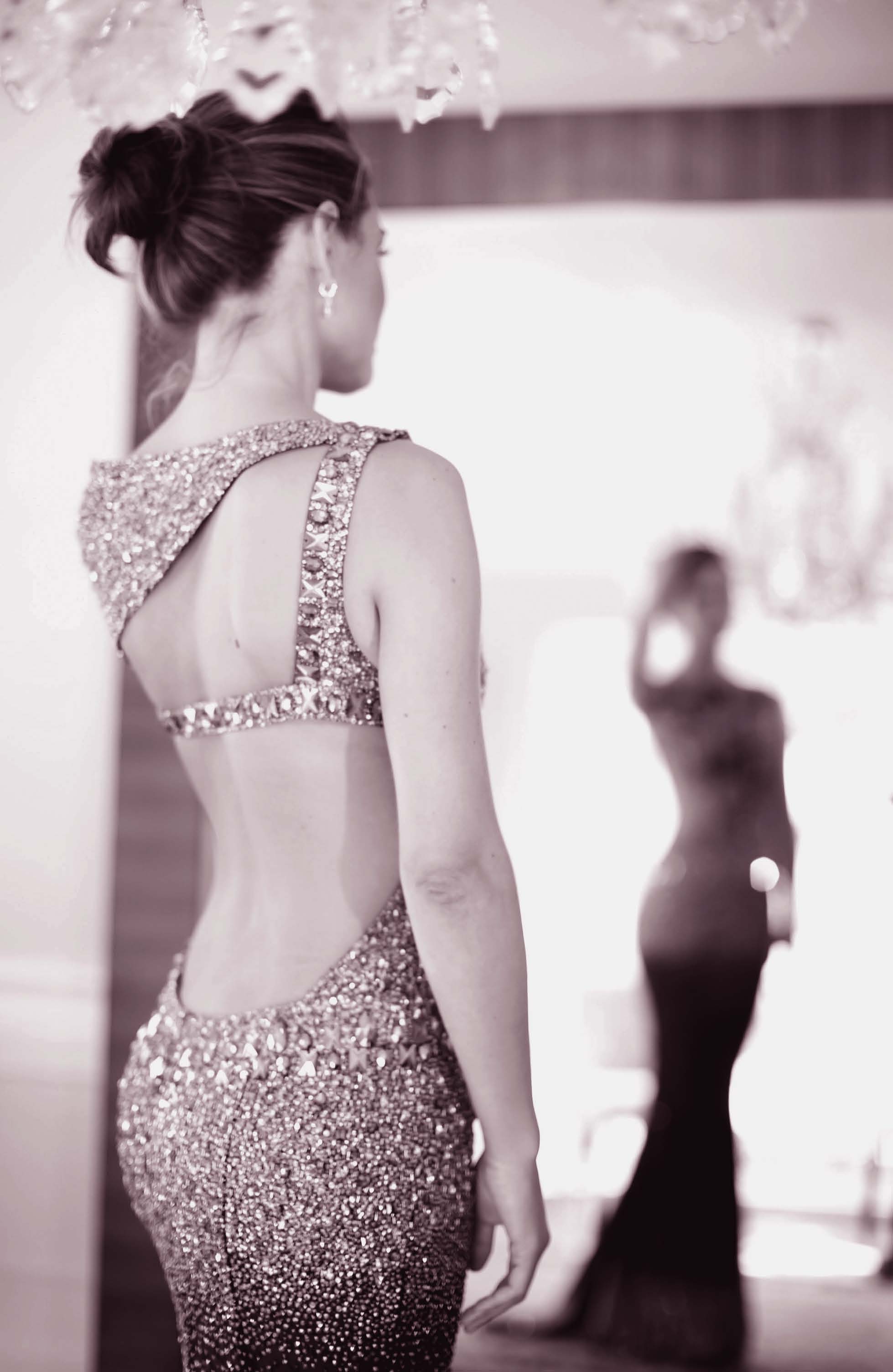 Russo We’re here in LA with a small couture selection of gowns and cocktail pieces that were pre-made for awards season. We are known for our very close and personal working relationships with celebrities, creating very special pieces from scratch. We usually meet with them and work together on a selection of sketches to get them inspired. Then from there we work on the shape, the colors, the fabrics, the materials and the right embellishments.