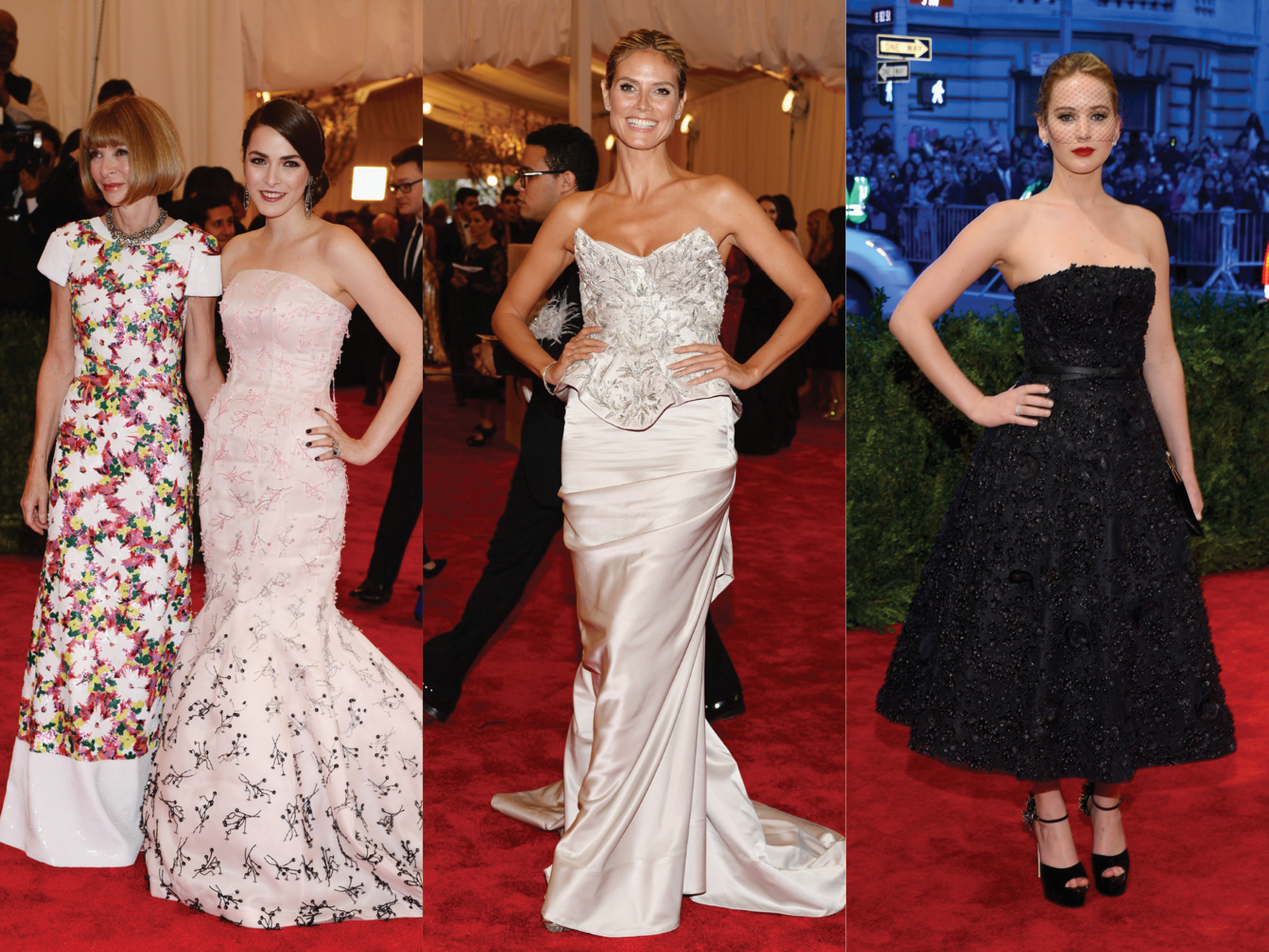 Anna Wintour in Chanel and Bee Shaffer in Dior, Heidi Klum in Marchesa, Jennifer Lawrence in Dior(L) to (R) Julianne Moore in Balenciaga, Kate Beckinsale in Alberta Ferretti, Marion Cotillard in Dior