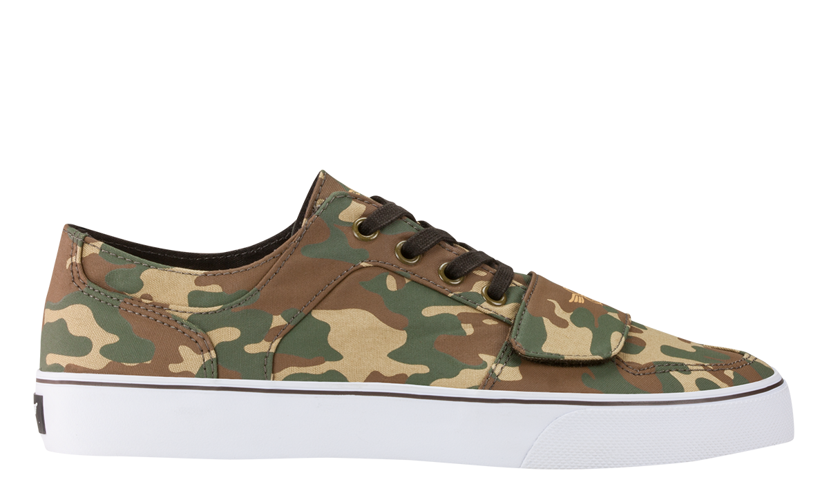 Cesario Lo XVI Camo – Right on trend for summer is the camouflage version of the Cesario Lo. Design features include: A full canvas body, tongue and lining with metal eyelets all on a simple vulcanized sole. Pictured above in chocolate camo. Also available in charcoal camo, price: $60.00