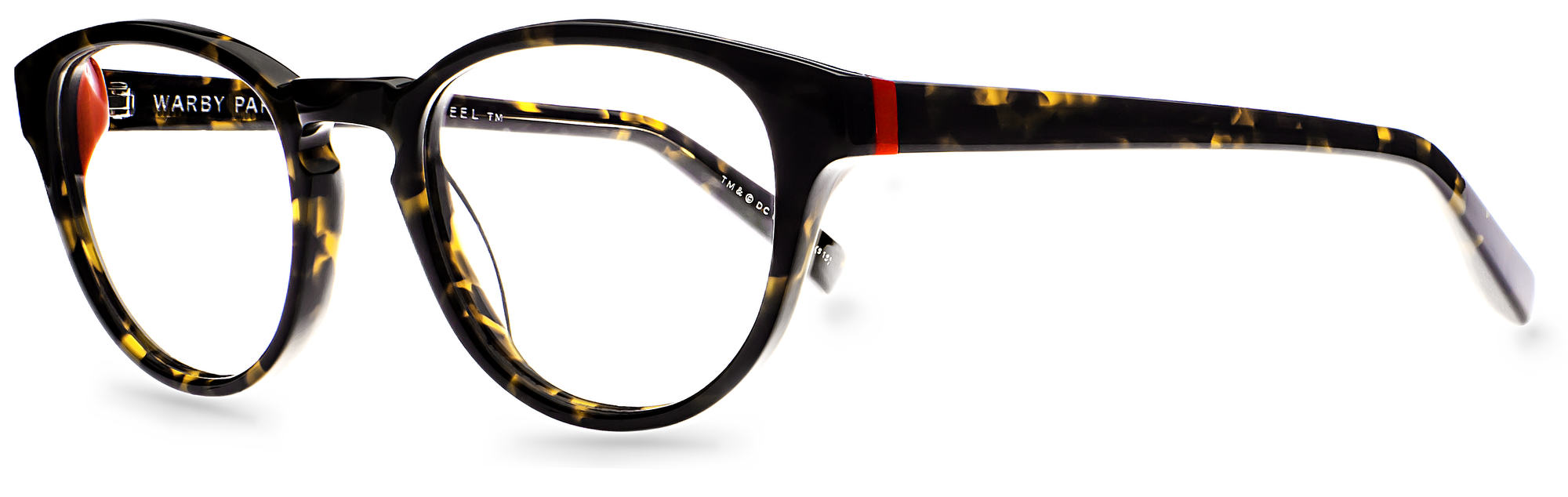 Percey – With its slim rounded shape and keyhole bridge this bookish and understated tortoise frame has a pop of color embedded in the temple arm. Measures 48-20-140 and retails for $95.00.