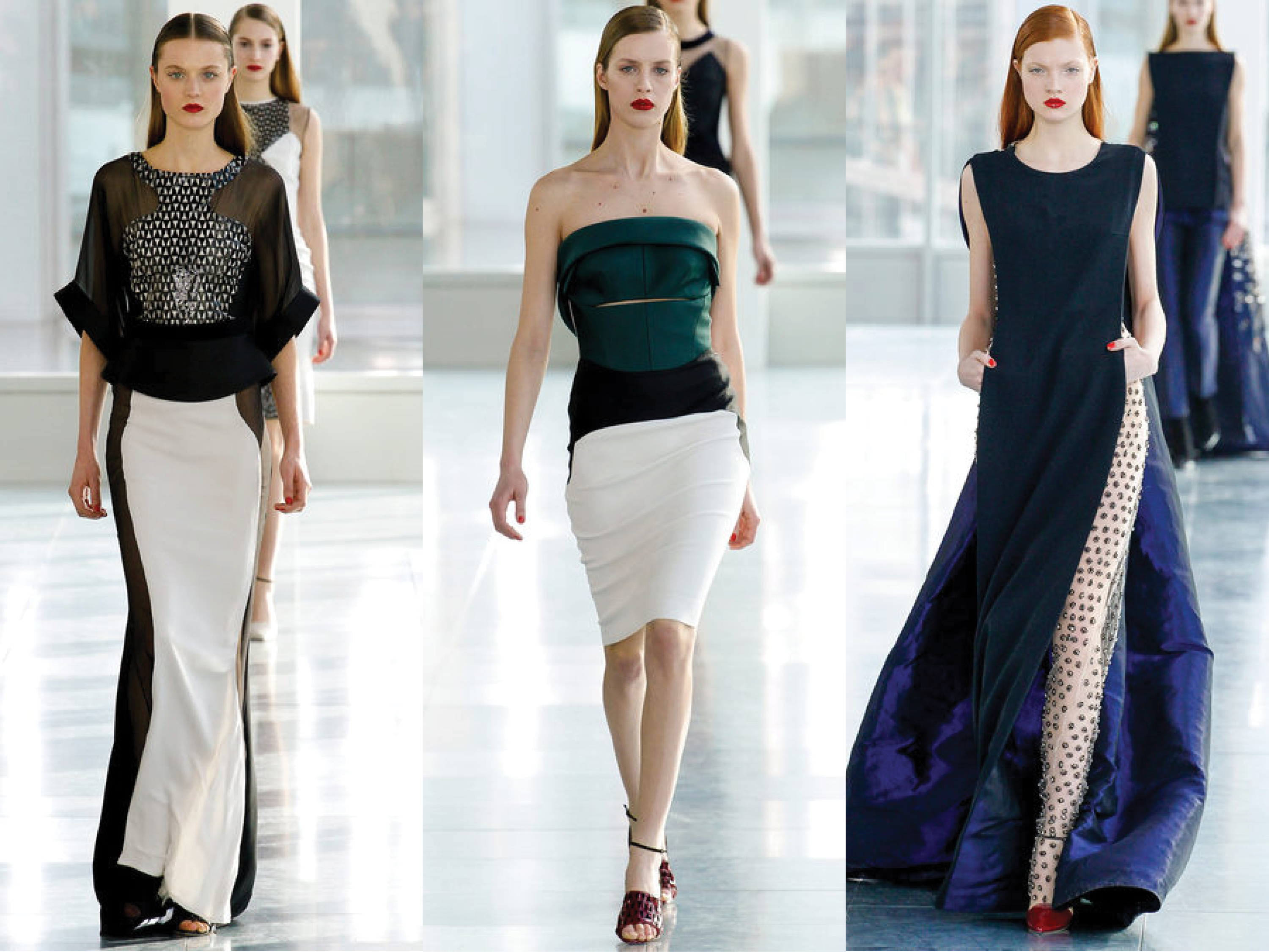 Antonio Berardi: For Fall I went slightly architectural and I was looking primarily at the architect, Niemeyer. If there were an architect that I could pull from that was similar in aesthetic to me, it would be him. I find his work to be modern, sensual and sexy architecture and I think it’s withstood the test of time. For me, what I do is not necessarily perceived as being right now, but it is in a subtle way and hopefully it has longevity. I try to design clothes that my customer can buy and wear longer than 6 months. At first glance the pieces seemed very flat as they moved down the runway but as they got closer, you could see the flourishes and shape of each piece. It’s nice when you’re able to discover the nuances and that’s my thing as well. I want women to see it, pick it up, fall in love with it and once they get home they’ll be able to really discover the details.