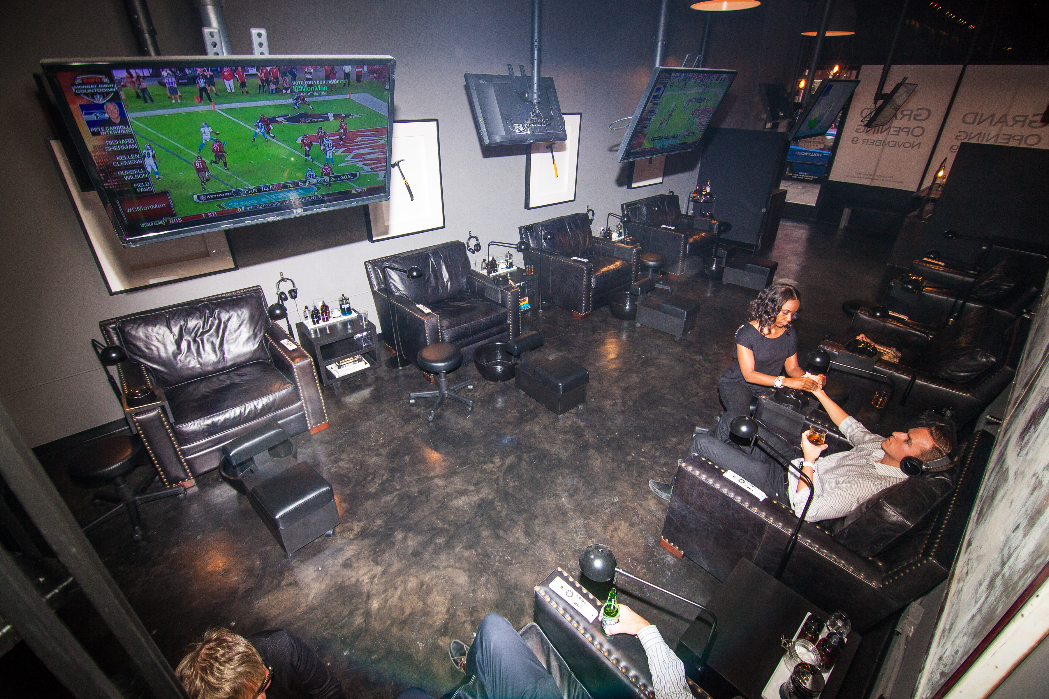 Complete with king-sized leather chairs, personal flat-screens with headphones, premium sports channels and complimentary beverage bar, Hammer Nails provides a variety of services tailored to men that include everything from shoulder massage to nail buffing.