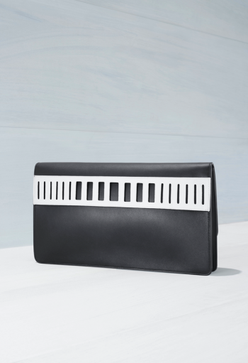 Pre-Spring 2015 handbags include three distinctive collections. The Vince Signature Collection, rendered in smooth, structured leather for a clean silhouette, features a unique “Signature V” detail on styles including the Medium and Large Totes, Medium and Baby Crossbodies and Medium Clutch. Select styles in stamped croc offer a luxe, textured alternative. The Modern V Collection is constructed in soft, slouchy pebbled leather, and includes a Large Satchel and Medium Crossbody with convertible straps for ultimate functionality. Finally, the distinctive Cut-Out Collection boasts statement-making silhouettes in graphic black and off-white. Cut-outs scale the sides of the Medium Tote and punctuate crossbody straps and easy-hold clutch handles, for a creative take on color-blocking.